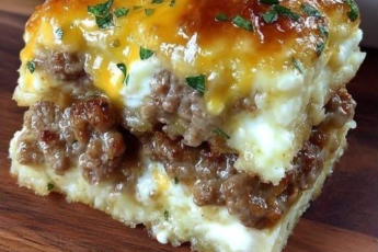 This 3-Ingredient Sausage Cream Cheese Casserole (also called “Sausage Squares”) is comfort food made