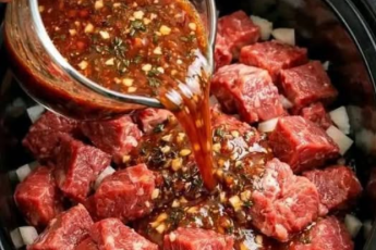 Ingredients: 1.5 kg (3 lbs) beef chuck, cut into large cubes 1 large onion, diced 4 cloves garlic, minced