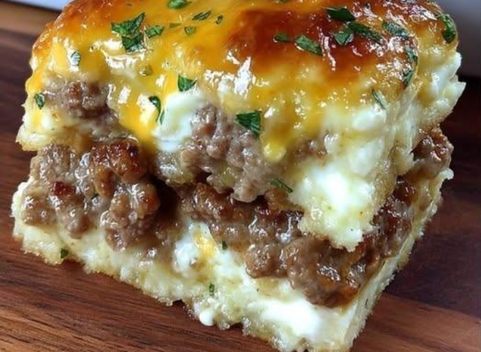 This 3-Ingredient Sausage Cream Cheese Casserole (also called “Sausage Squares”) is comfort food made ridiculously easy. Flaky, buttery crescent dough holds a rich, savory filling, and the cream cheese melts right into the sausage crumbles for a creamy, perfectly seasoned bite without any extra spices. Perfect for holiday brunches, or cut into small squares for a game-day snack everyone will fight over.