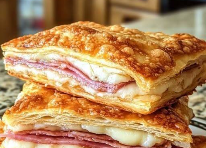 3. Layer half of the ham, salami, and provolone cheese on top of the crescent dough.