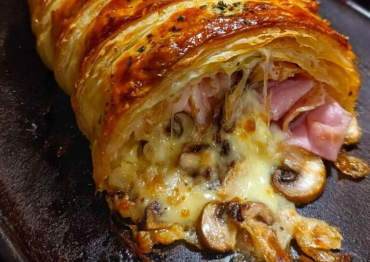 This mushroom-ham puff pastry is just that: a golden, flaky crust wrapped around a creamy filling of sautéed mushrooms, smoked ham, and melted cheese. Just the thought of it makes your mouth water.