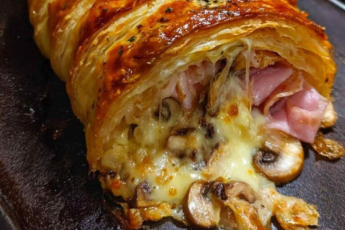 This mushroom-ham puff pastry is just that: a golden, flaky crust wrapped around a creamy filling of