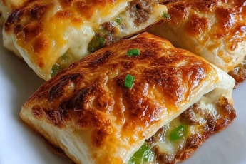 Ingredients 2 sheets Puff pastry 1 pound Ground beef 1 cup Cheese (such as mozzarella, cheddar, or preferred