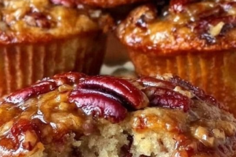 These Pecan Pie Muffins require just five simple ingredients for a rich, nutty treat with a caramelized