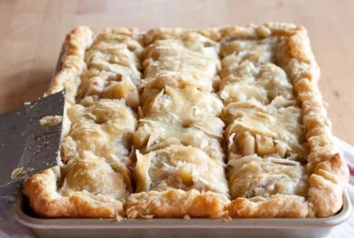 Heat oven to 450°F. Remove pie crusts from pouches. Unroll and stack crusts one on top of the other on lightly floured surface. Roll to 17×12-inch rectangle. Fit crust into 15x10x1-inch pan, pressing into corners. Fold extra pastry crust under, even with edges of pan. Crimp edges.